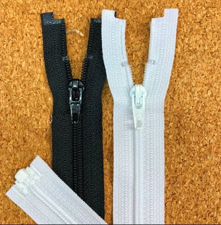 This is a 18 inch long white coil zipper (CFO) with DA puller. This is an open-end zipper which can be applied as below:Jackets, leather jacket, kids wear, Dresses